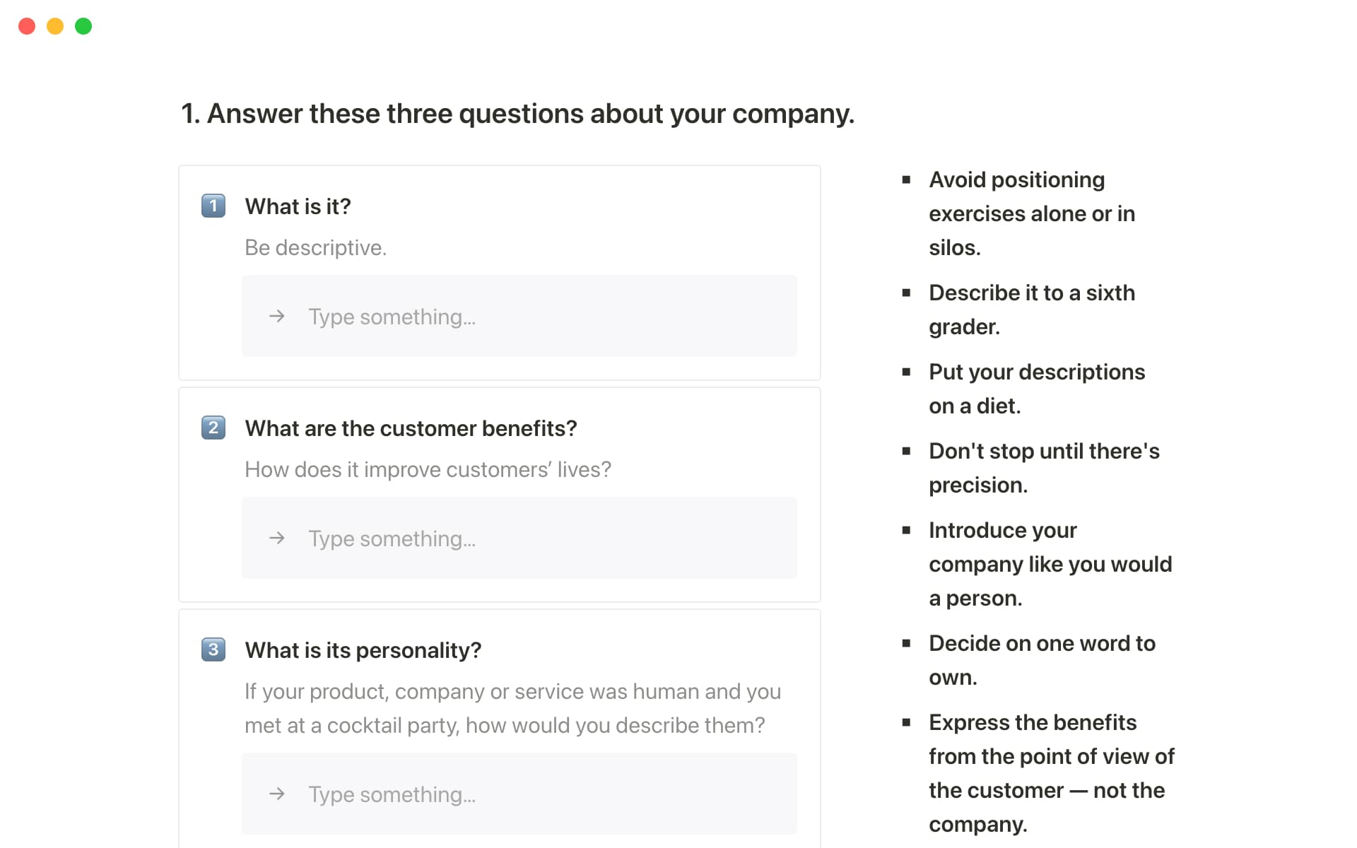 Now, you can try his framework as a Notion template — by the end of the template, you'll crystallize what makes your product unique and how to communicate it.